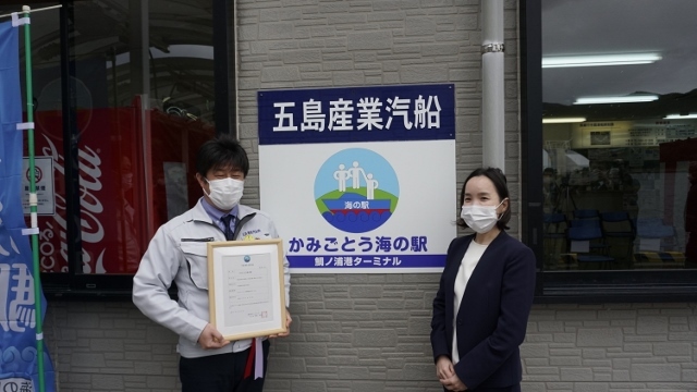 新上五島町での第1号の海の駅として「かみごとう海の駅」の認定を受けました!ヨットやクルーザーで新上五島町へ上陸される方々の海の玄関口にもなっており、鯛ノ浦港ターミナルが「ただの旅客船ターミナル」としてだけでなく、様々な用途で人が自然と集えるような場所にしていけるよう試行錯誤しています。