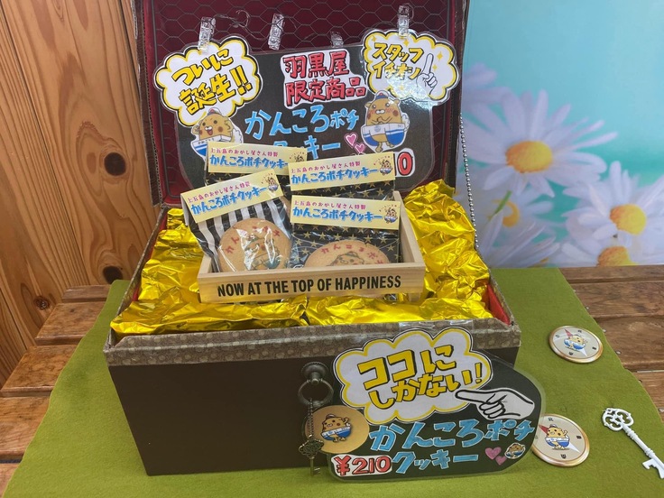 鯛ノ浦港ターミナル内売店「羽黒屋」 手作りポップ。