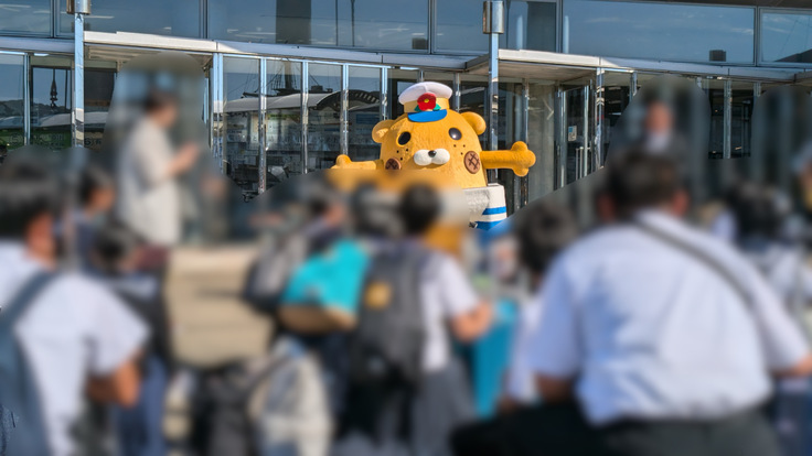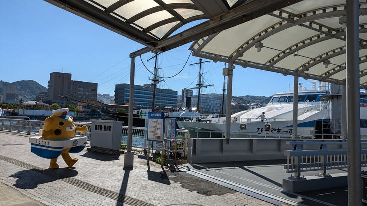 五島産業汽船㈱公式マスコットキャラクター「かんころポチ」が2024年10月9日、鯛ノ浦港から修学旅行のために弊社航路に乗船してくださった学生さんのお出迎えをしました!