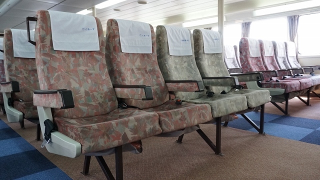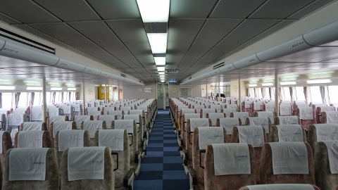 船内は広々とした空間で、座席も大きめ。また揺れ軽減機能「ライドコントロールシステム」で船酔いしにくい乗り心地となっており、多くのお客様に快適な船旅をご提供しております。