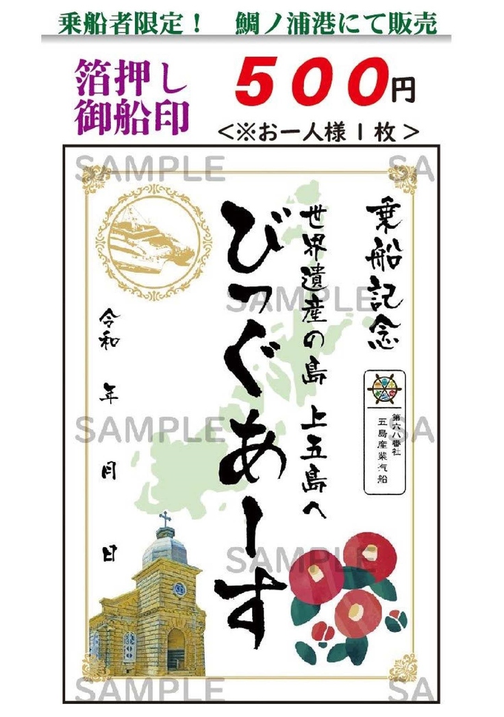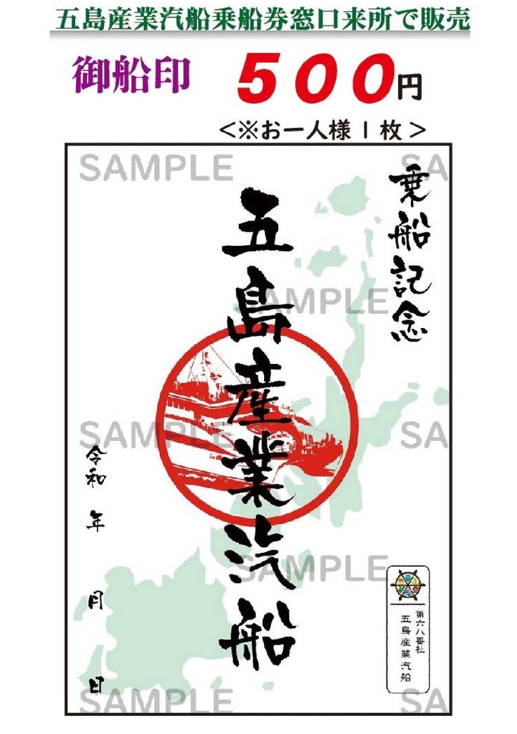 五島産業汽船㈱乗船券窓口来店にて購入できる御船印