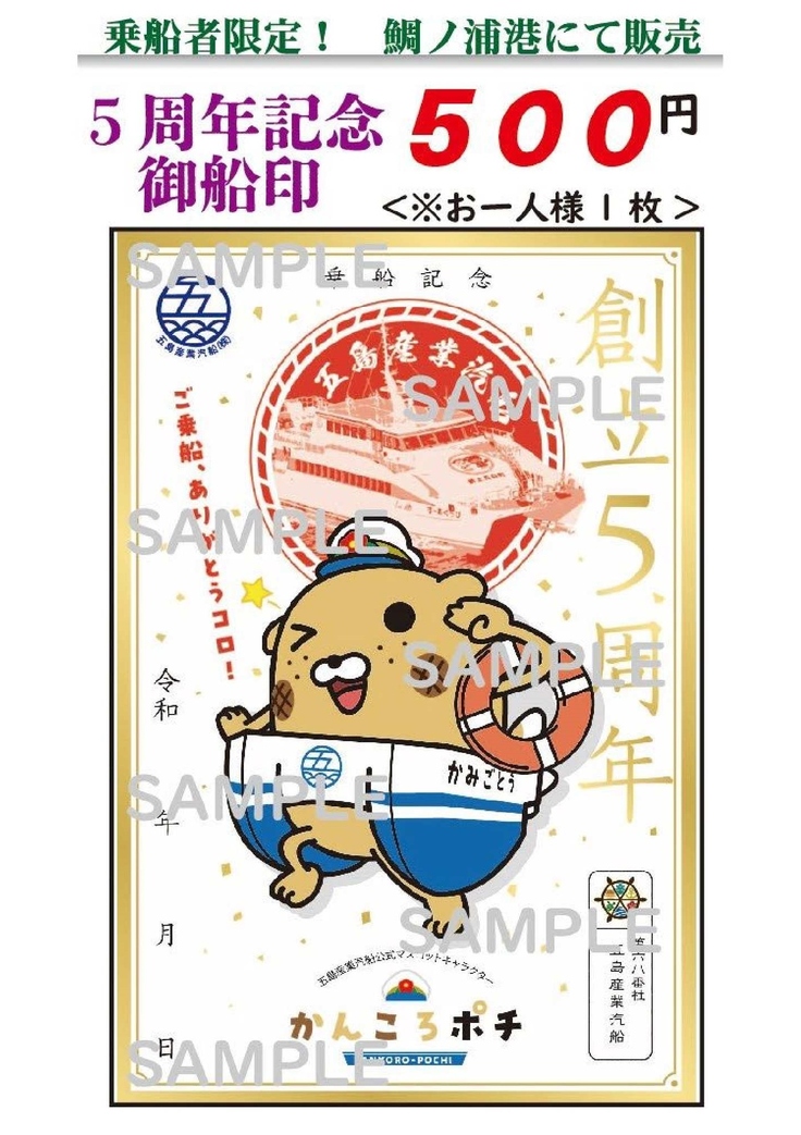 弊社公式マスコットキャラクター「かんころポチ」が誕生した際、枚数限定で特別なかんころポチ御船印も作成しました。