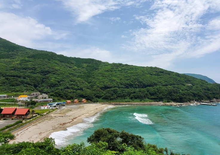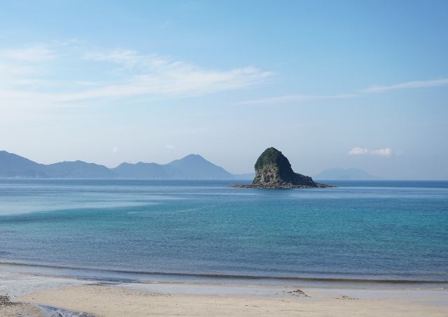 五島灘の水平線がのぞめる 高井旅(たかいたび)海水浴場