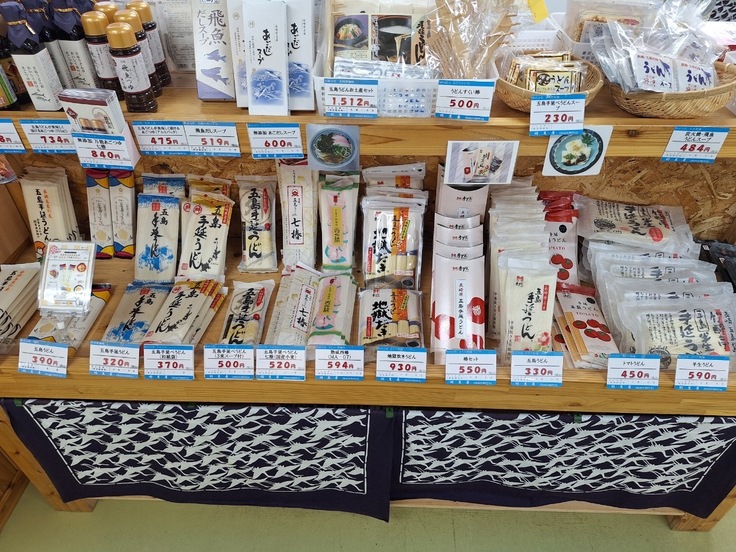 島内にある各製麺所が販売している五島うどんをたくさん取り揃えておりますので、食べ比べしてみるのもおすすめ!