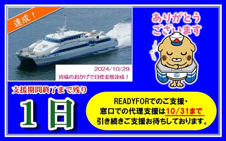 皆様よりいただいたご支援は鯛ノ浦~長崎航路の運航費用として感謝を込めて活用させていただく予定です。ありがとうございます。