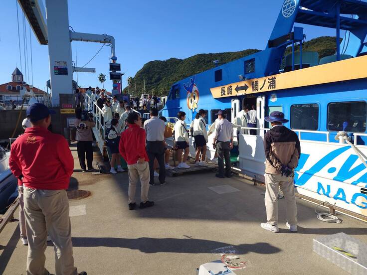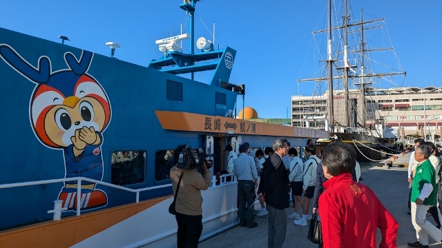 長崎サンセットマリーナ様からのご依頼で、災害時に長崎市福田地区が孤立して、海路での接続の可能性を探るための防災授業「災害時輸送実験」が行われ、五島産業汽船の自社船舶Vアイランドが長崎サンセットマリーナと長崎港間の運航を担当させていただきました。