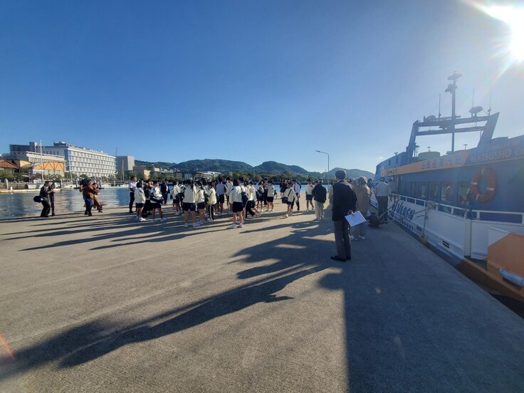 〈Vアイランドに乗り込む中学生の皆さん〉