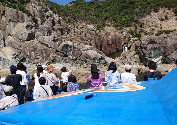 〈海上からしか見ることができないキリシタン洞窟〉