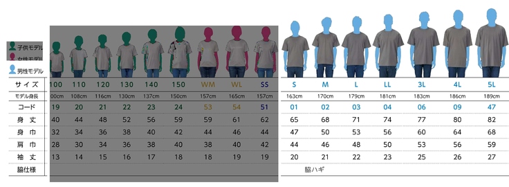 〈Tシャツのサイズ展開:S・M・L・LL・3L・4L・5L〉