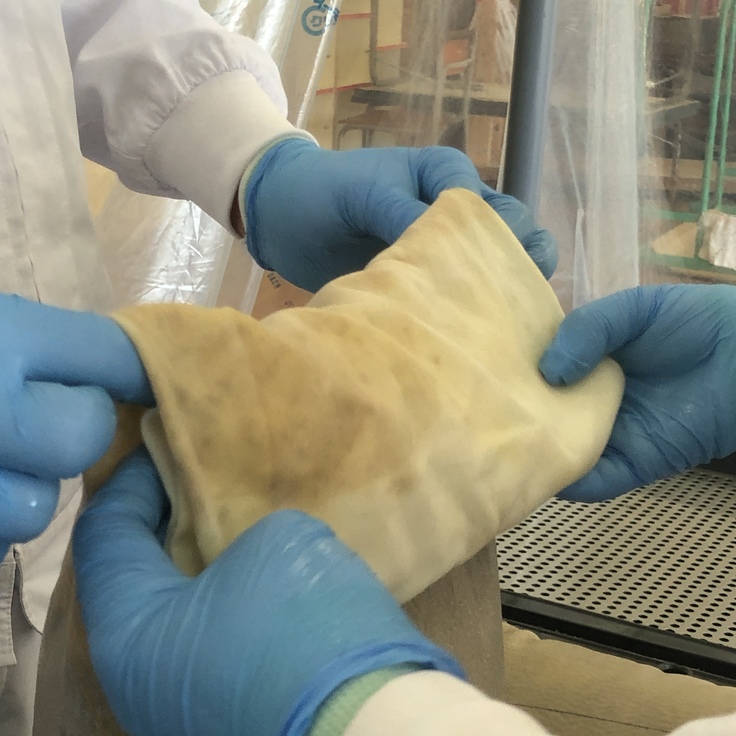 【魚醤をいれたこの絞り袋は、日本酒の製造の際にも使われる伝統の絞り袋】