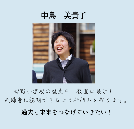 郷野小学校は自分の卒業した母校であり、三人の子どもたちも卒業した思い出の木造校舎です。