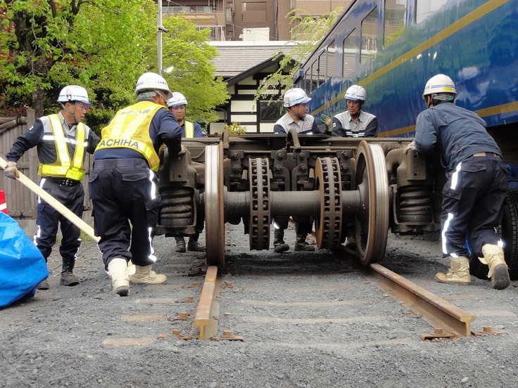 電車を1両吊り上げて線路上に設置する。という、滅多に見られないクレーン作業には感動さえ覚えました。