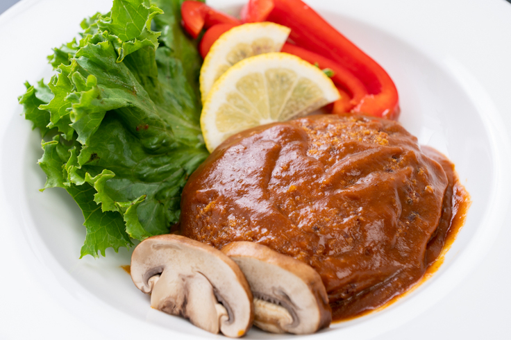グランデミートのハンバーグを頂きました!食べた瞬間、旨みを強く感じ、食感も普段食べているハンバーグと変わりなく、とても美味しく、「大豆ミート」であることに驚きました。
