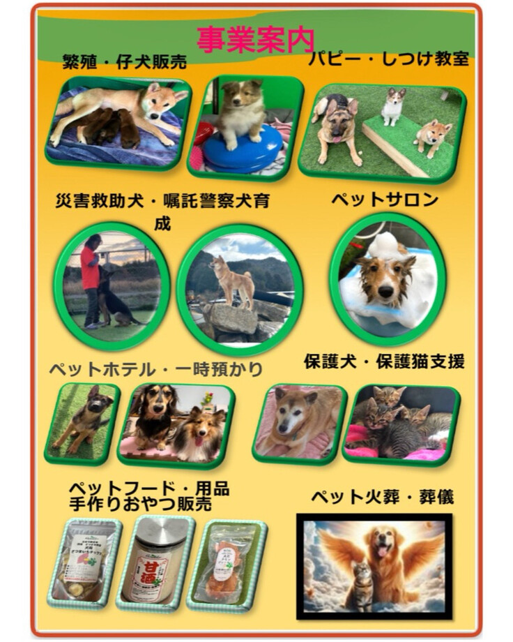 警察犬・災害救助犬の育成や、保護犬・猫の支援活動、そしてペットの最期に寄り添う火葬まで、「命の誕生から旅立ちまで」命と人に深く寄り添う活動を行っています。
