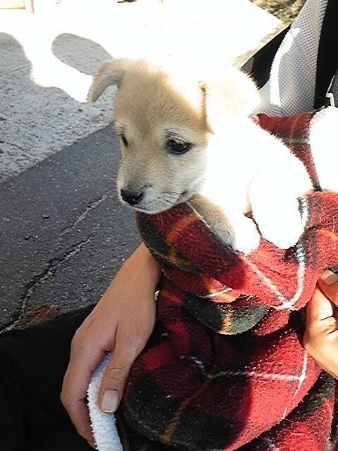 空き家の軒下で仔犬を産んでいた母犬とその仔犬たちを保護しました。