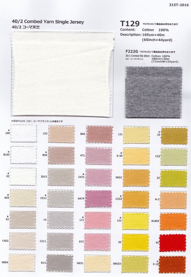 小さな文字をよく見るとこちらも「40/2」です。40番手の二本取り。でも「40/2コーマ天竺」とはずいぶん雰囲気が違います。字面だけでは全然わかりません。生地は本当に難しいです。