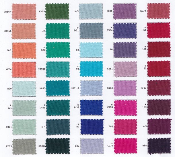 人気のお色は「16番ティファニーブルー」と「18番紫」でした。とても魅力的な色なので当然の結果だと思います。主役色はその通りですが、脇役色として「9番陰りのある白」はニュアンスカラーというか、オンオフどちらでも合わせやすい色だと思っていたのですが全く注文がありませんでした。私の好みは皆さんより地味なようです。