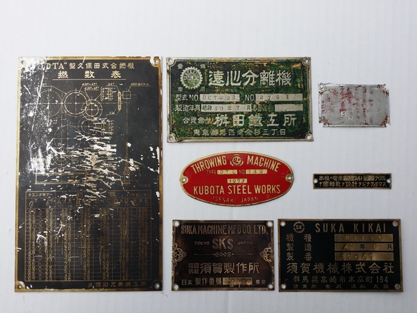 機械についていたコーションプレート。一番新しいのは1973年。同い年です。