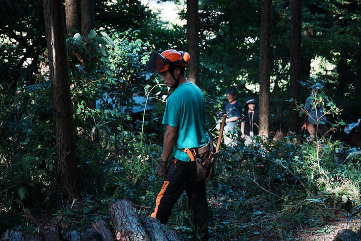 密植放置され真っ暗で単調な人工林に這いつくばって、ほとんど金にもならないであろうスギを自腹を切って地道に間伐していく。当面、それだけだ。だが、力の塊みたいなチェーンソーを揮って伐倒すること、そうして林冠に穴が空き、陽光射す林床に多くの樹が萌すこと——ここにもたしかに悦びが存在する。