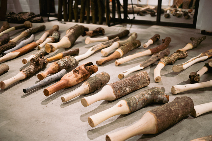 なるべく多くの樹種で、様々な棍棒を作ったら面白いはず。そんな想いから棍棒をつくり続けた私たちは、2022年、大阪のKITAHAMA N GALLERYで「大棍棒展」を開催しました。