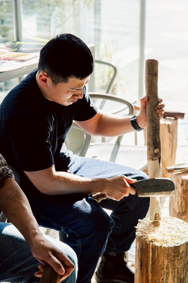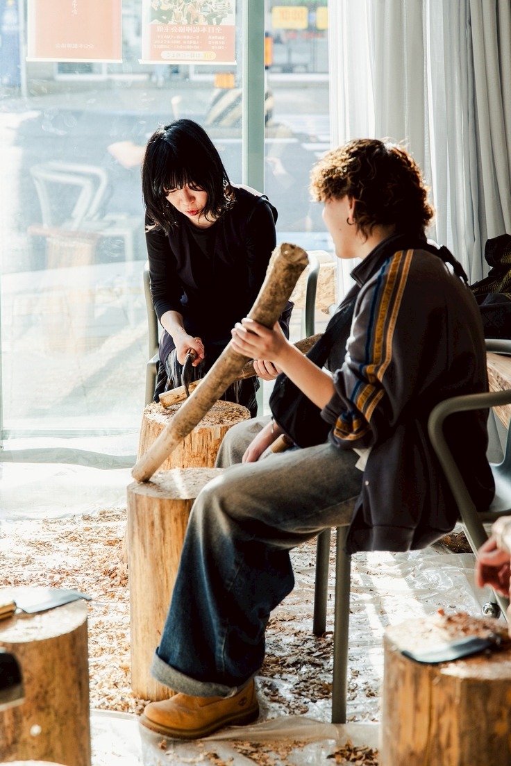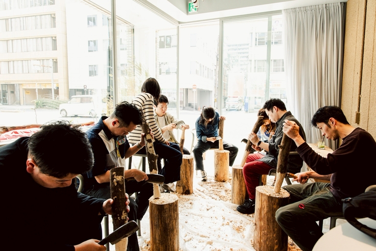 何人もの大人がカフェで木を削っている様は非常に奇妙でありつつも、どこか正しさを帯びていました。