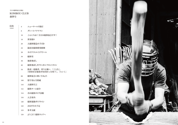 棍棒協会ではこれまで『棍棒入門』『こん棒飛ばし大会のしおり』と、入門書的な冊子2冊を出してきましたが、今回の『KONBOU CLUB』創世号は棍棒の現在地、圧倒的到達点を示すエポックメーキングなものとなること間違いありません。