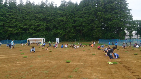 ここまで来るのに約2年かかりましたが、今回、日本サッカー協会のグリーンプロジェクトで芝をいただき子ども達やその保護者達皆で芝を植える事ができました。