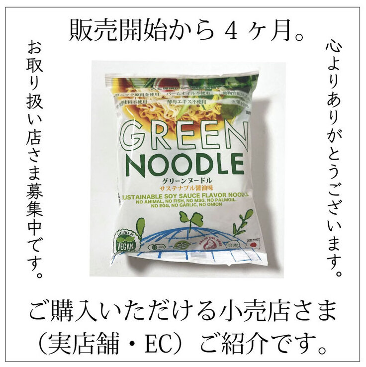 そして、グリーンヌードル販売にご協力いただけます小売店様、ECサイト様、[大募集]しております。