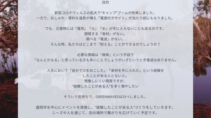 代表小野と共に、岩手を拠点に、サバイバル講習会を2022年4月から実施しています。