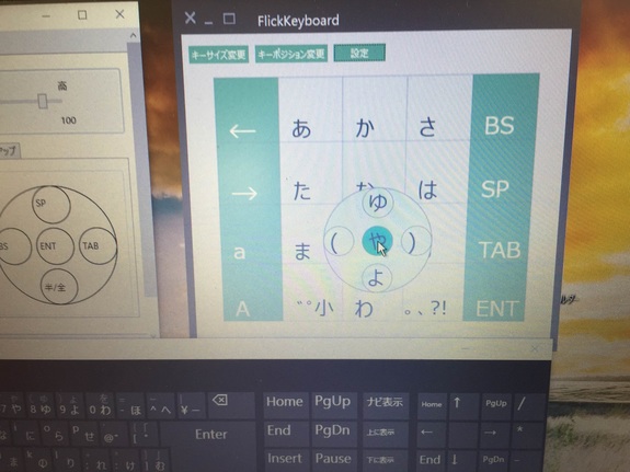 スクリーンキーボードは、マイクロソフト標準のフルキーボードの他に、スマホでおなじみのフリックキーボード(フリーソフトの「flick Keyboard」がおすすめです)があります。日本語でメール文を作成する時にはひらがな入力ですからフリックキーボードのほうが手早く入力できます。