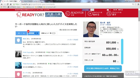 60通あまりいただいた応援メッセージの中には身障者本人からのものや、そのご家族からのものも数多くあり、グリップギアのようなデバイスに対する期待を強く感じました。