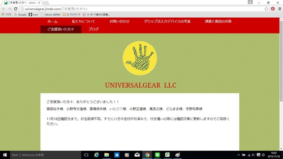 ご支援頂いた方々のお名前をグリップギア公式サイトに掲載