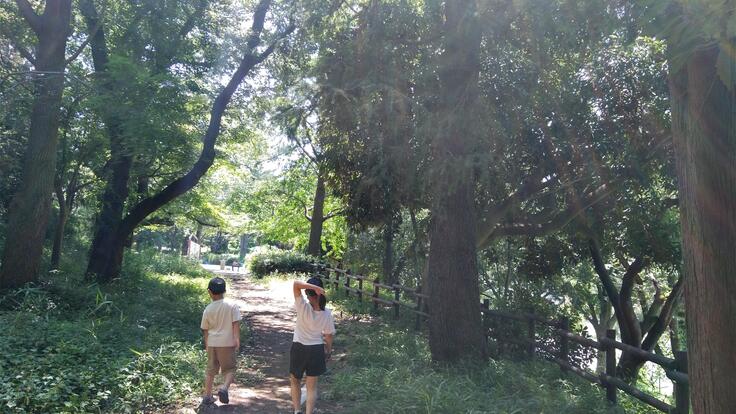 大きなバッタや、鮮やかな青い模様のチョウをつかまえつつ公園内を歩いていると、