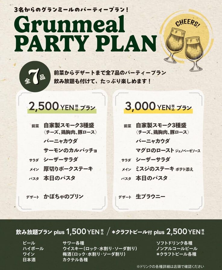 また、飲み放題付きで4,000円から、クラフトビール飲み放題付きでも5,000円で楽しめる、お手頃な設定です。ぜひお店の新たな魅力を発見してください^^