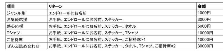 ※エンドロール:支援時に表示される記入欄にご希望のお名前をお書きくだい。
