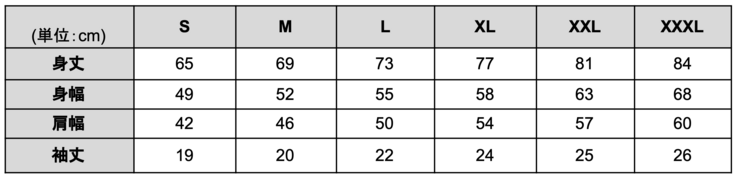 (Tシャツサイズ表)