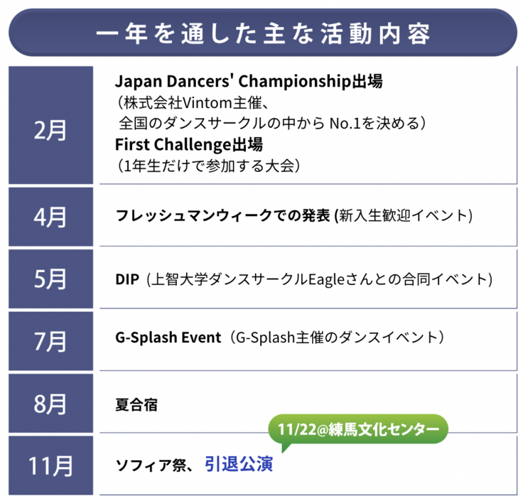 上智大学公認ダンスサークルG-Splashが、2025年11月22日に練馬区立練馬文化センター大ホール(こぶしホール)にて31st引退公演を実施する。集まった資金は、全額、映像・照明演出費・引退公演諸費用として使用する。
