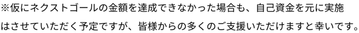 - 必要金額と目標金額の差額は、自己資金にて補填いたします。