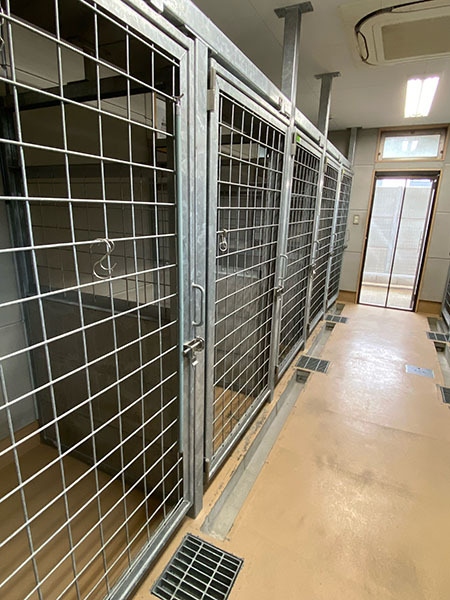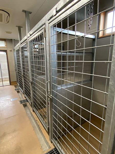 まずは犬室。犬室と犬室の間を区切る壁を低くし、通気性を向上させました。