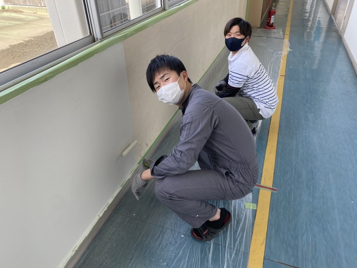 最近、学校の2階廊下の壁にペンキを塗ったのですが、片側しか塗っていなかったので、今回は反対側を塗ることにしました。