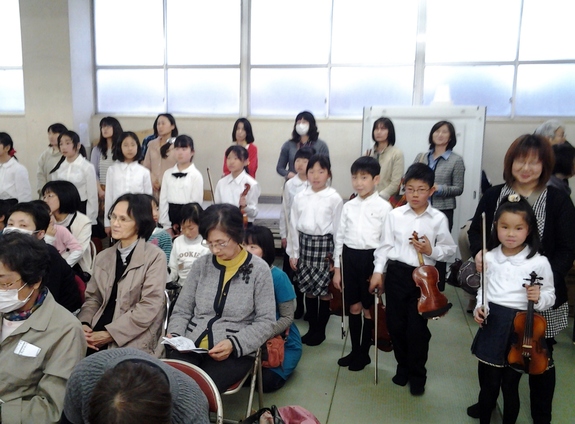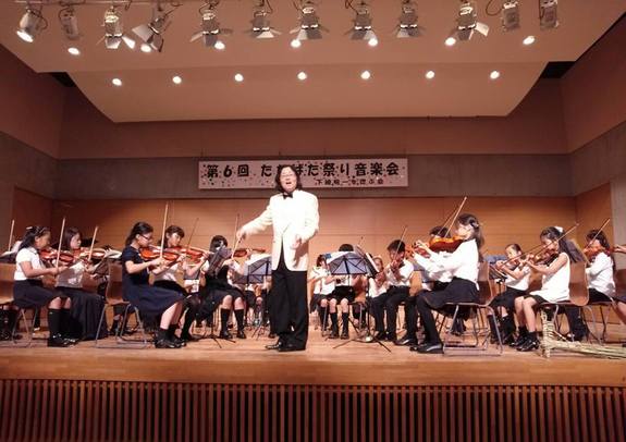 7月7日に地元加須市の「七夕まつり」に初舞台で東京芸術大学音楽部長であった下總皖一先生の作曲された「七夕さま」をわずか数か月で演奏するまでに成長しました。福島県は以前から全般的に音楽教育が盛んなところでありましたが、多くの子供たちが原発の避難により音楽仲間と離れ離れになって、大変寂しい現状だと音楽の先生から伺いました。