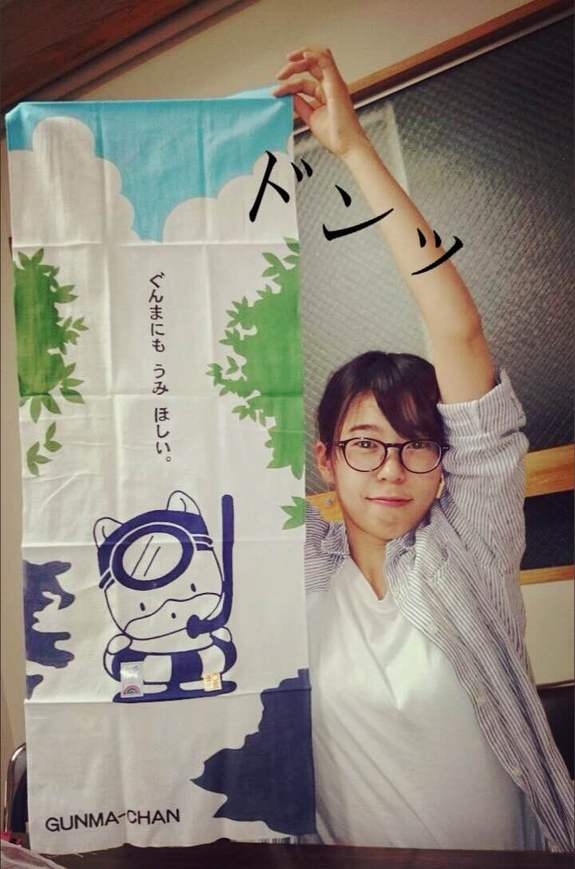 中村染工場様のぐんまちゃん手ぬぐいと喜ぶかんちゃん