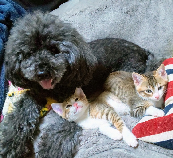 当時すでに犬を2匹飼っていたため、里親を探すつもりで保護しましたが、4ヶ月間うちで過ごすことになり、愛犬「大河」がまるで父親のように2匹を見守ってくれました。