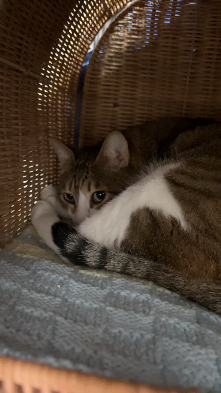 私たちは、猫4匹と犬1匹、夫と私の家族で暮らしています。