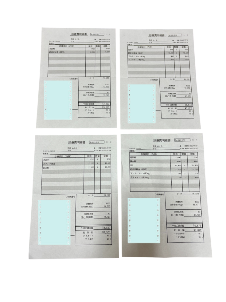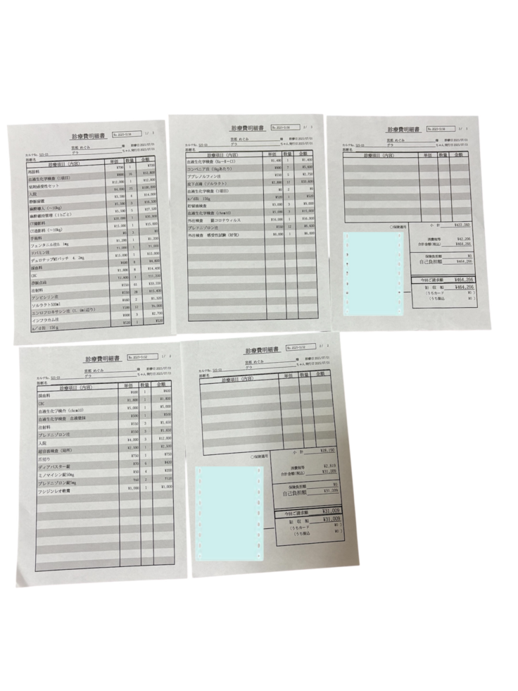 ページ上に掲載している診断書や診療明細書などの資料は全て動物病院から掲載の許諾を得ております。