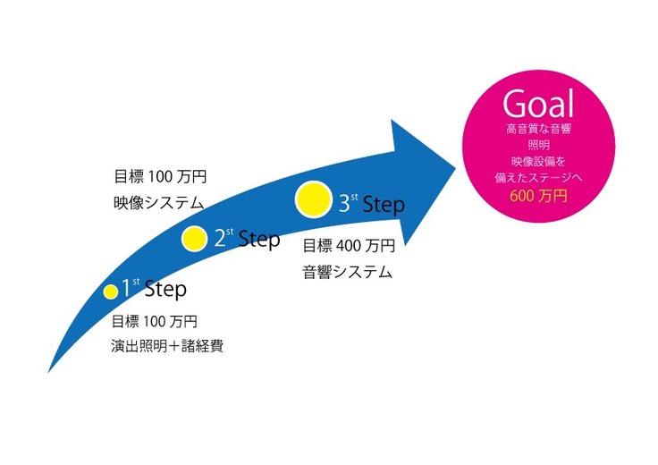 あと一歩、音響、照明、映像設備の不足分のために、皆様からのお力添えをいただけたら幸いでございます。