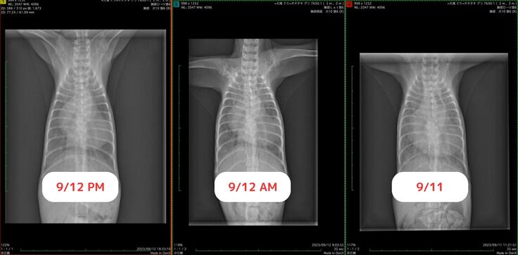 パンパンだった心臓も少し小さくなり、肺も白さが薄くなりました!