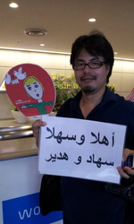 (中央緑のTシャツがハディールさん。ピンクのTシャツがスハッドさん)