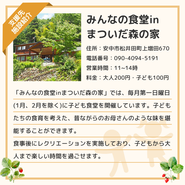 本日ご紹介する支援先は「みんなの食堂inまついだ森の家」さん!✨