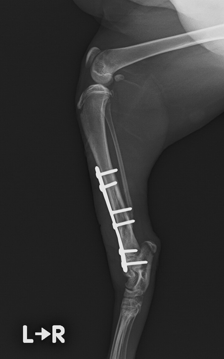 4月20日、右後ろ脚の骨折を治すため、プレートで固定する手術を行いました。